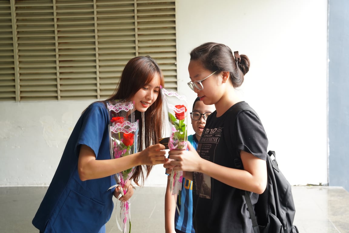 Khi các cô, các chị, các em đi ngang qua, đội ngũ nha khoa Huy Hoàng đã chủ động tiến đến, gửi tặng một bó hoa nhỏ cùng lời chúc: